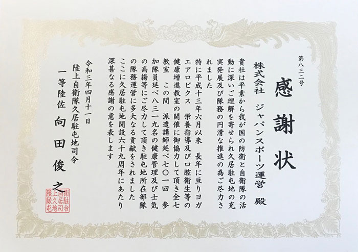 この度、感謝状を頂戴し、大変光栄に思います。