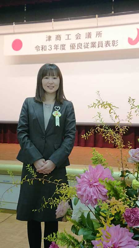 津商工会議所 令和3年度 優良従業員に輝きました伊庭聡美さんです。