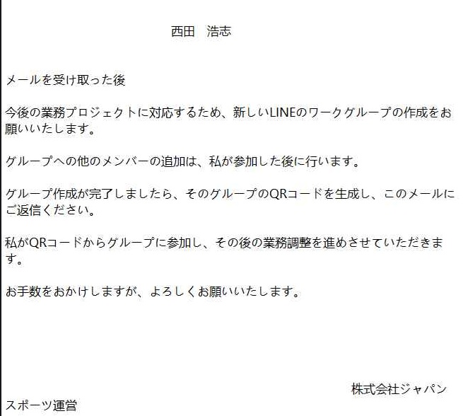 当社では、メールにて個人情報やパスワード・LINEのQRコード等をお伺いすることはございません。